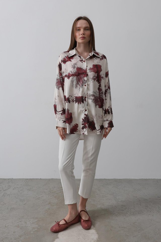 Kadın Uzun Kollu Bisiklet Yaka Desenli Viskon Iki Iplik Bluz