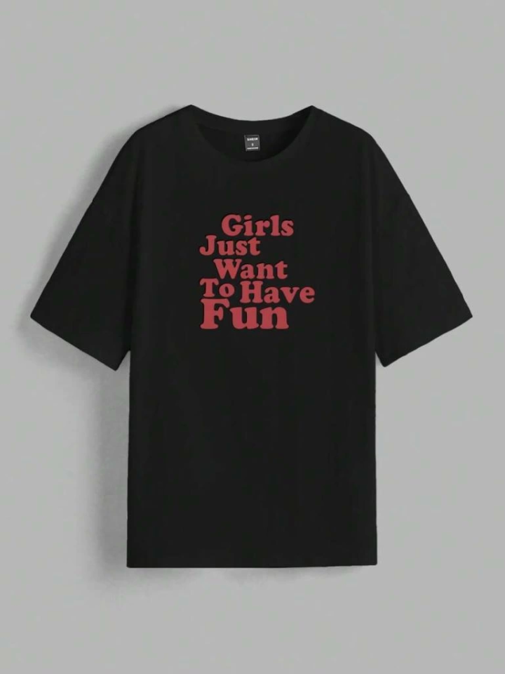 Baskılı Oversize T-shirt - Siyah