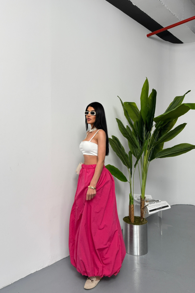 BEL LASTİKLİ BALON ETEK ŞANEL BOY SOFT KUMAŞ - Fuşya