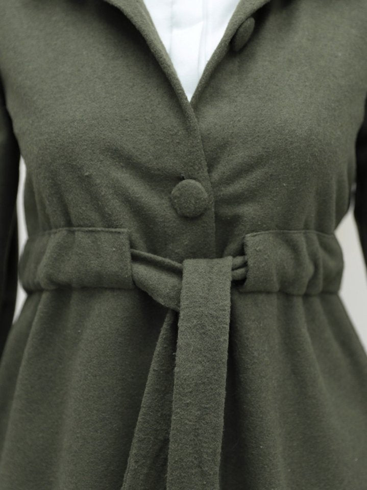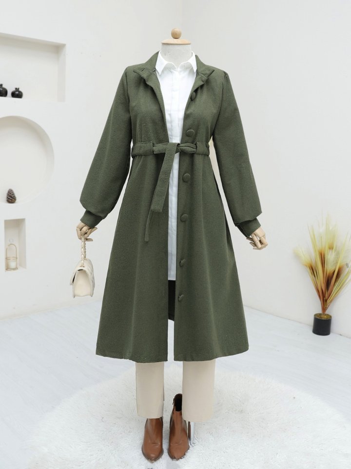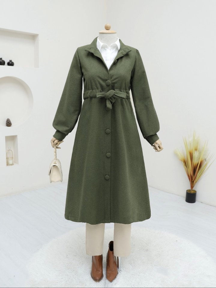 Belden Bağlamalı Top Düğmeli Kaşe Kaban -Haki