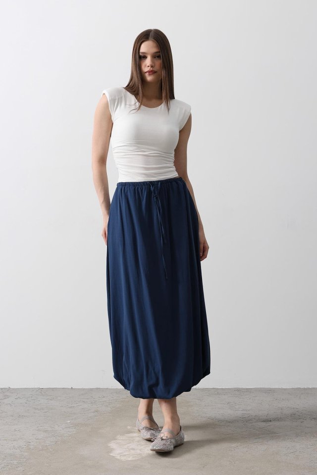 Kadın Uzun Kollu Tek Omuz Askı Detay Salaş Viskon Iki Iplik Bluz