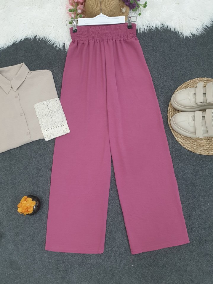 Beli Kalın Lastikli Salaş Ayrobin Pantolon -Vişne