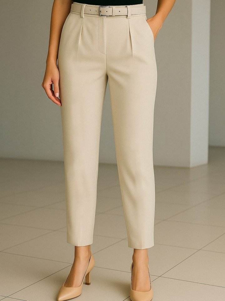 Beli Kemerli Çift Cepli Pantolon-Bej