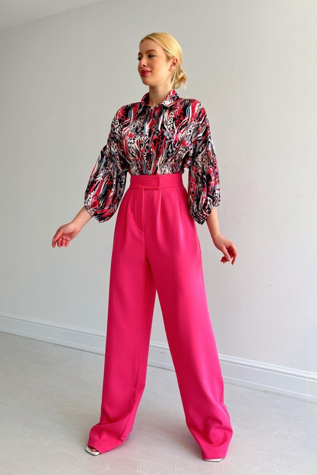 Kadın Uzun Kollu Bisiklet Yaka Desenli Viskon Iki Iplik Bluz