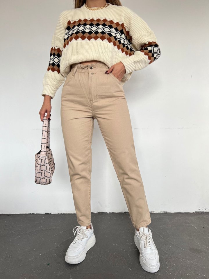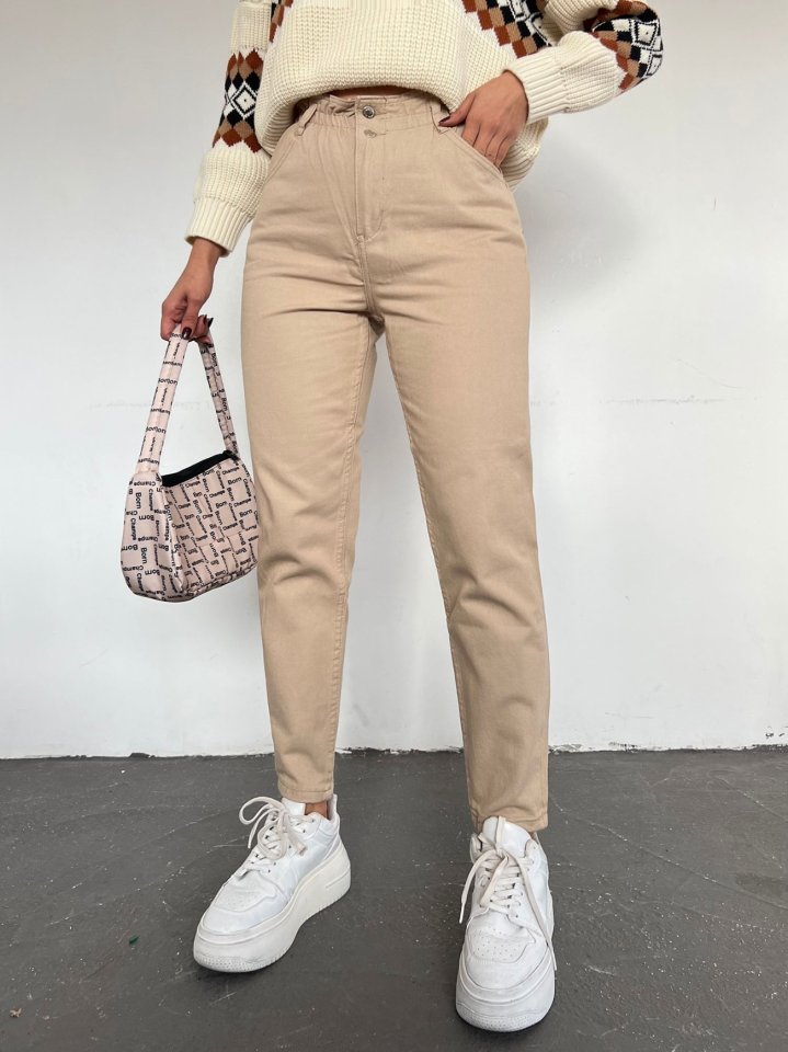 Beli Lastikli Yüksek Bel Kot Pantolon -Vizon