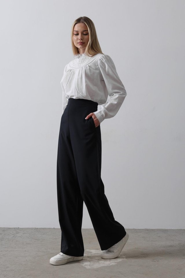 Beli Yarım Lastikli Palazzo Pantolon - Lacivert