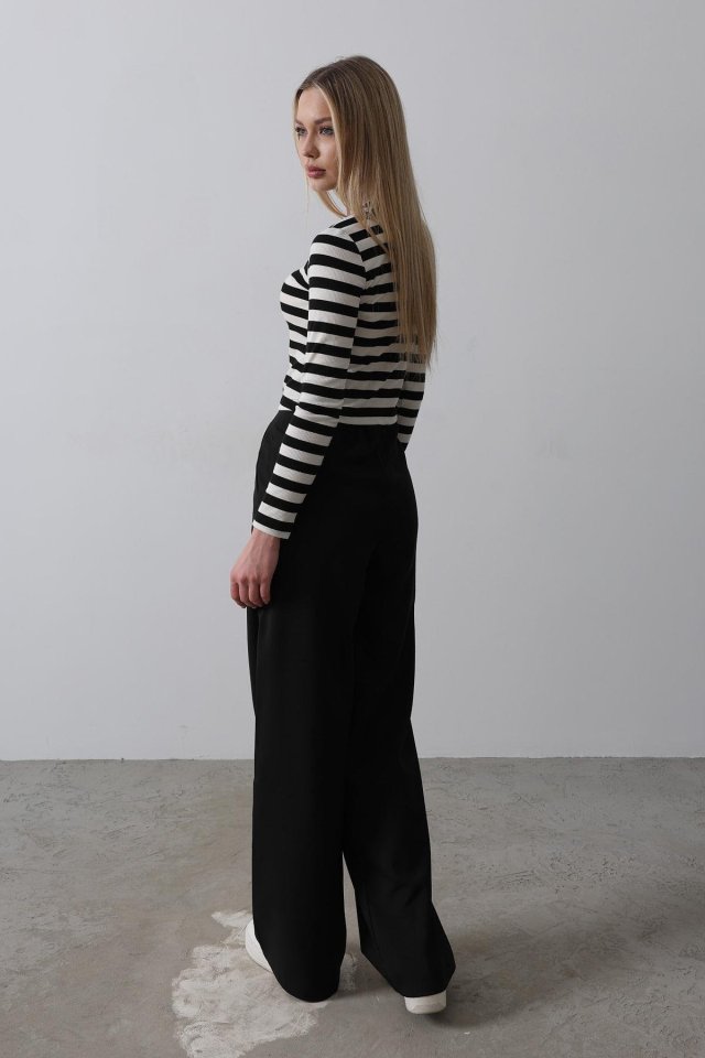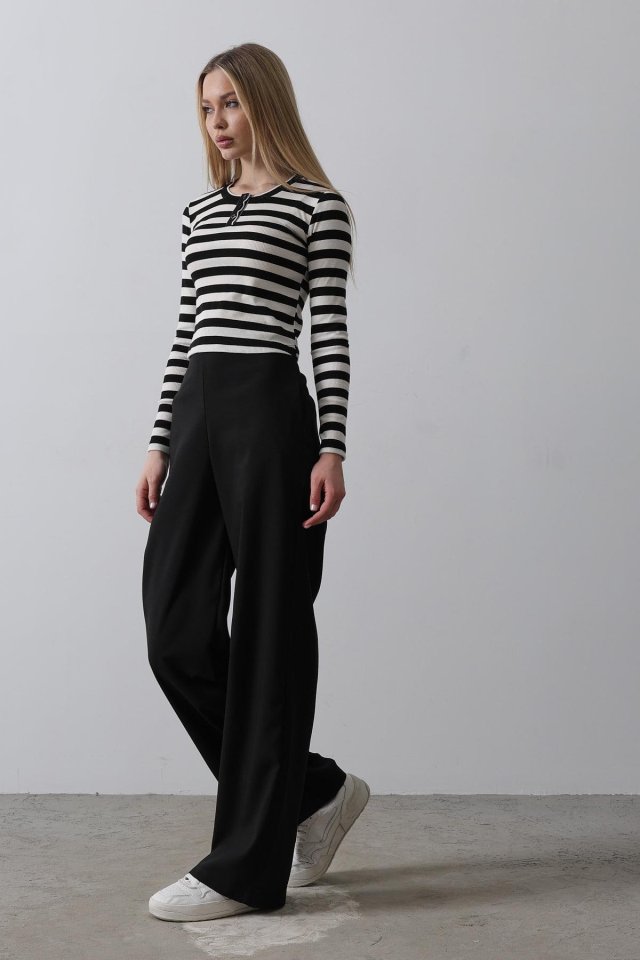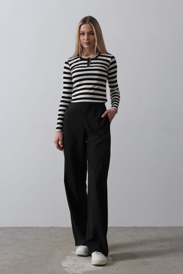 Beli Yarım Lastikli Palazzo Pantolon - Siyah
