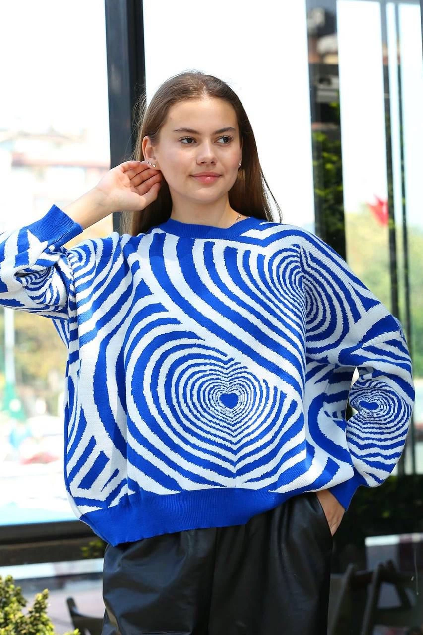 Kadın Uzun Kollu Bisiklet Yaka Desenli Viskon Iki Iplik Bluz