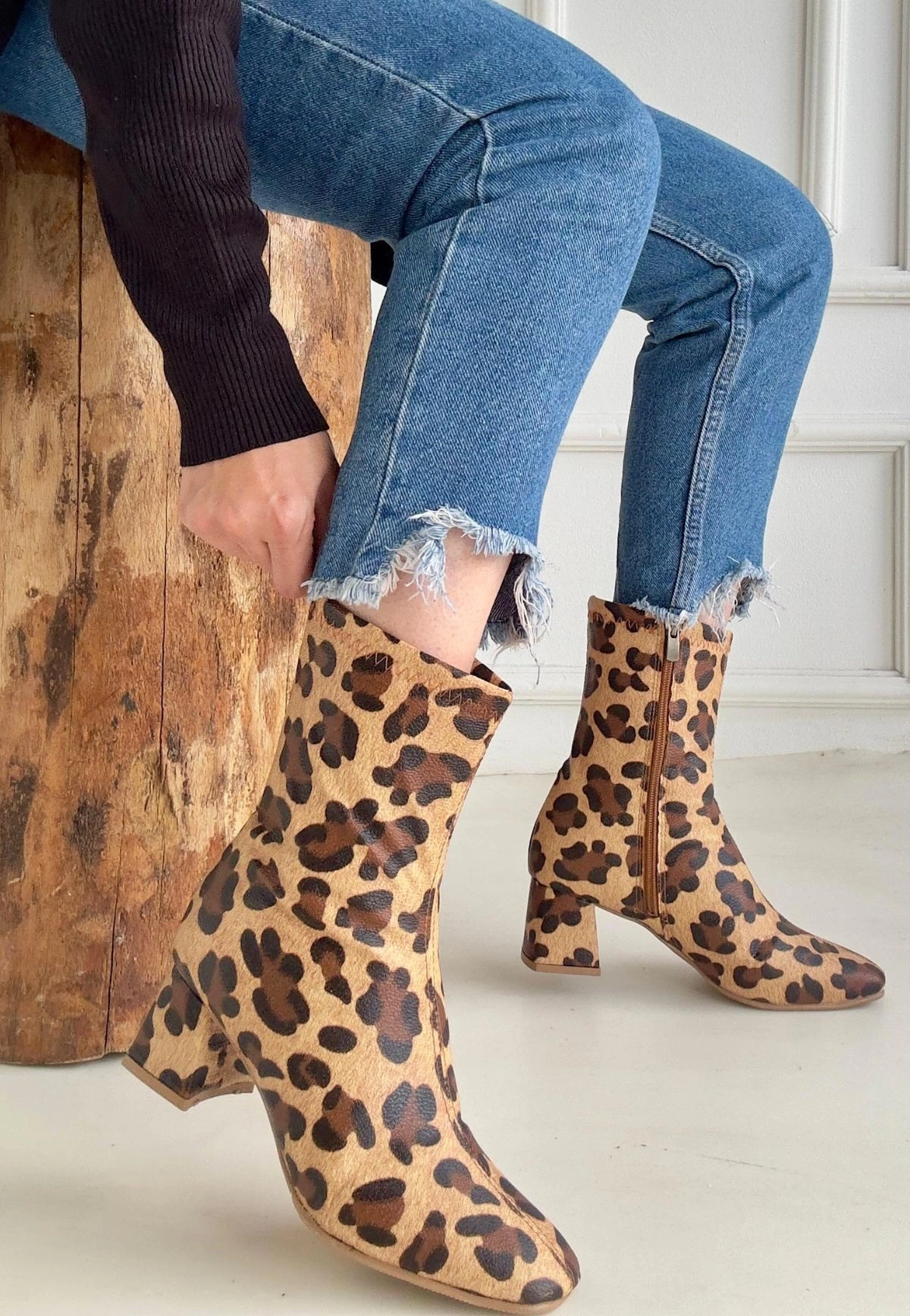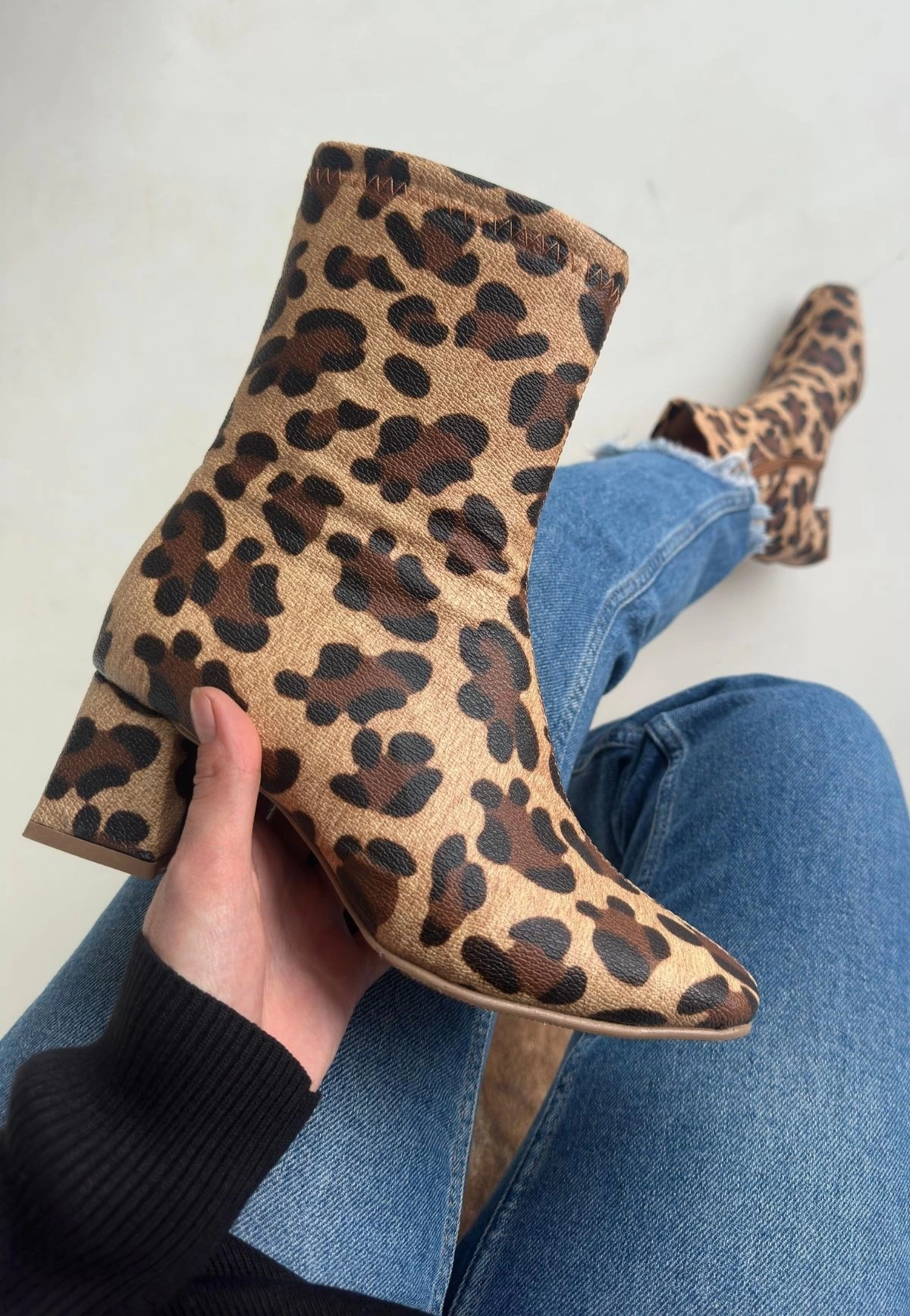 Birta Leopar Cilt Streç Topuklu Bot