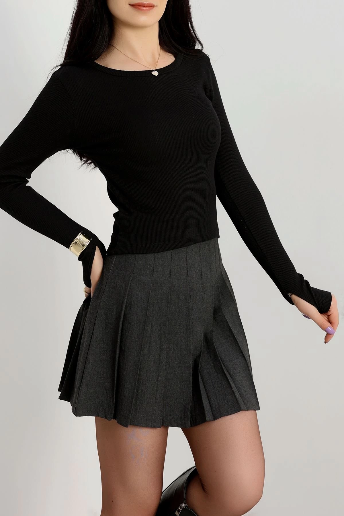 Bisiklet Yaka Parmak Geçmeli Kaşkorse bluz siyah a3829