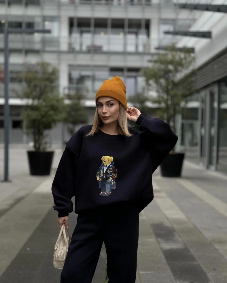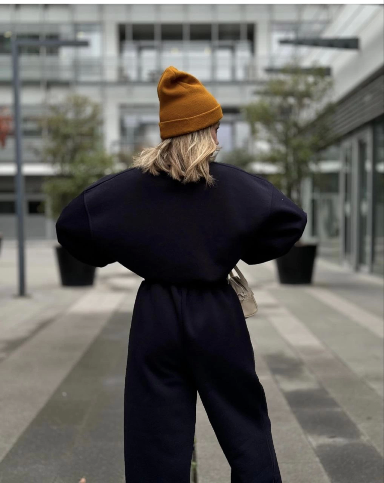 Bisiklet Yaka Üç İplik Sweat Takım - Siyah
