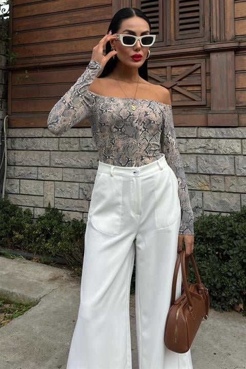Kadın Tek Omuzdan Açık Uzun Kollu Modal Bluz