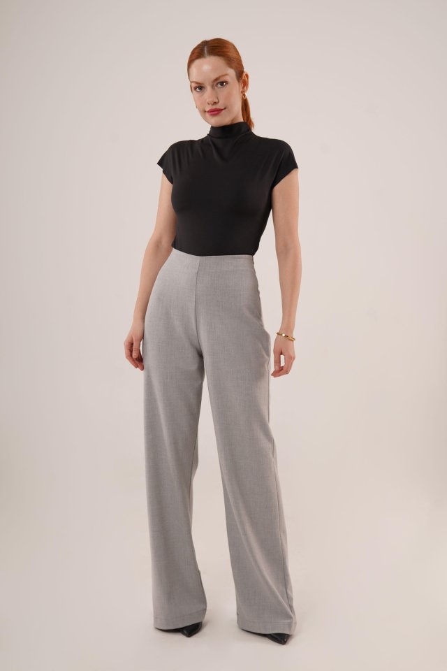Bol Paça Yandan Fermuarlı Gri Kumaş Pantolon