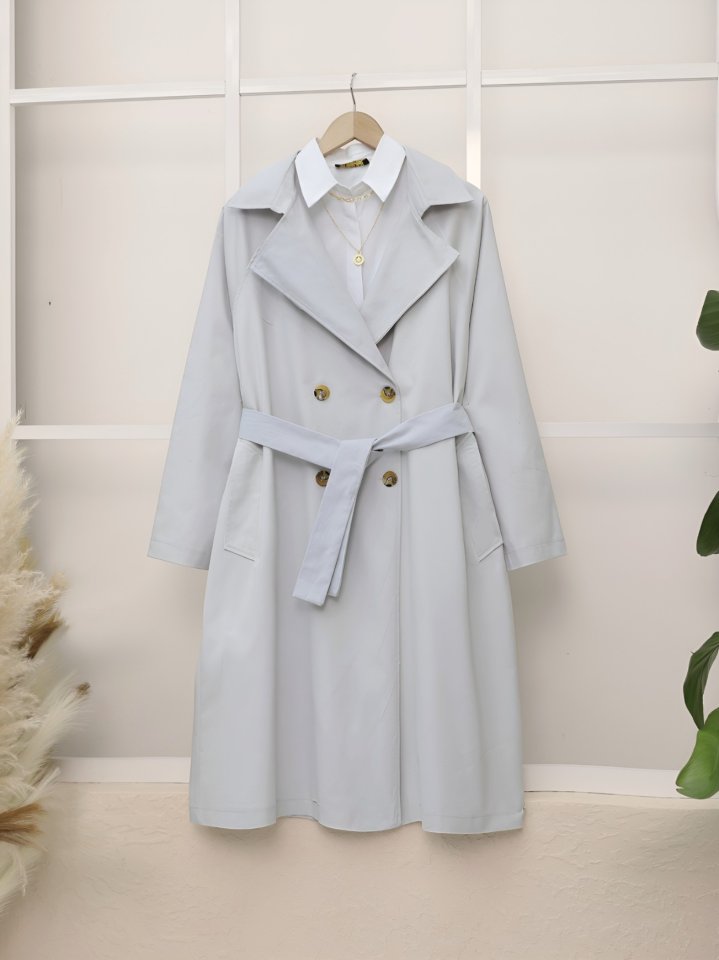 Bolero Detaylı Kemerli Araboy Trençkot -Açık Gri