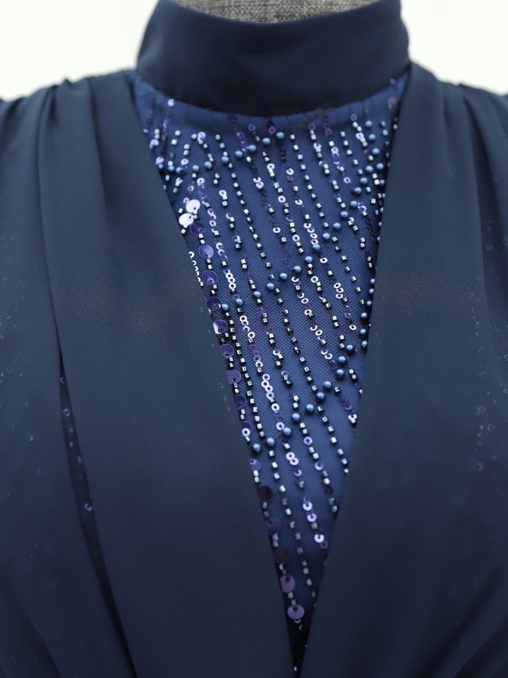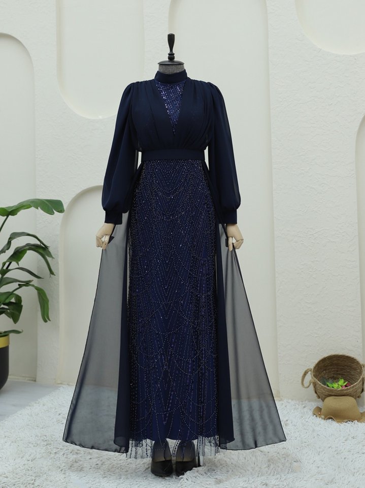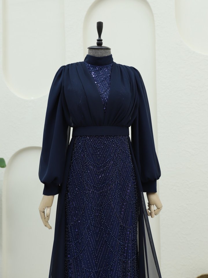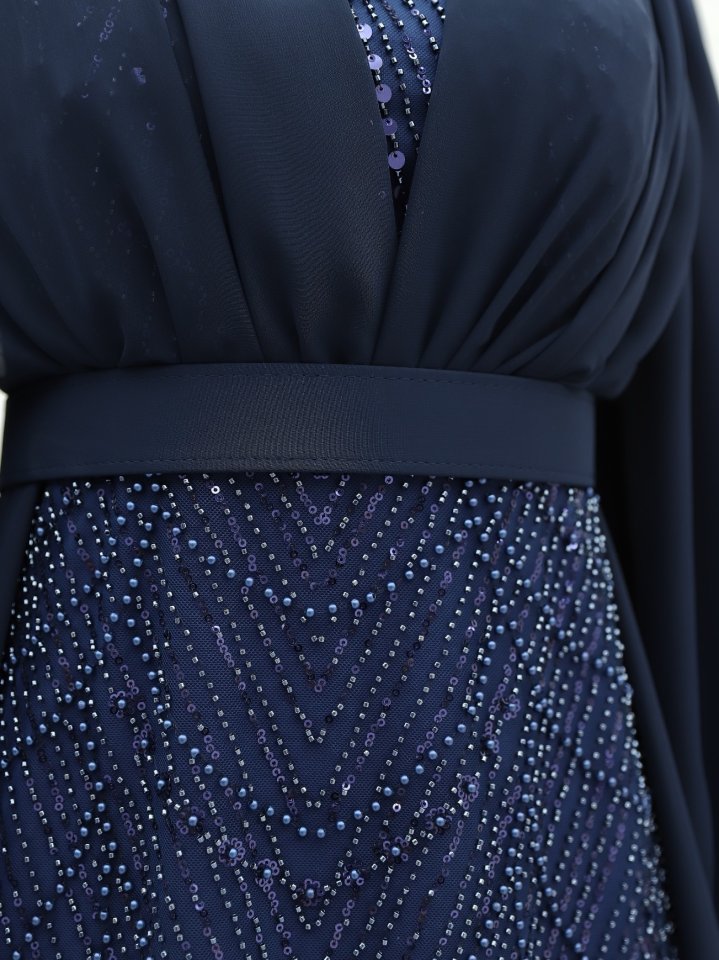 Boncuk Ve Pul Detaylı Kemerli Şifon Abiye -Laci