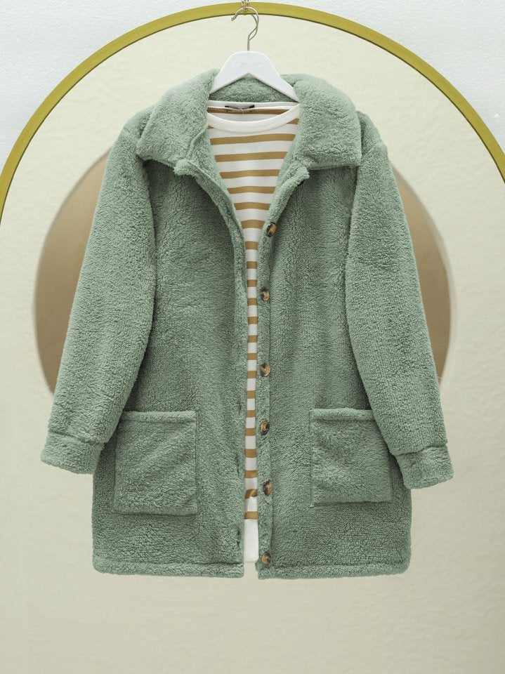 Boydan Düğmeli Cepli Pelüş Ceket -Mint