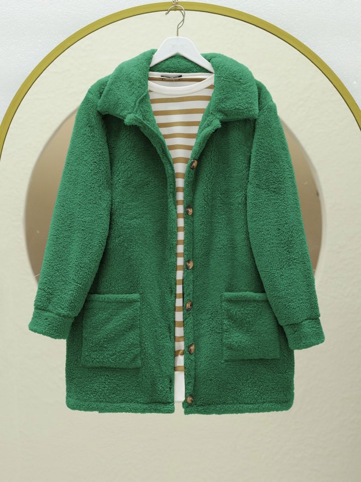 Boydan Düğmeli Cepli Pelüş Ceket -Yeşil