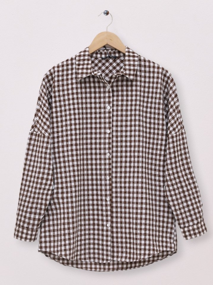 Boydan Düğmeli Gofre Gömlek -Kahve