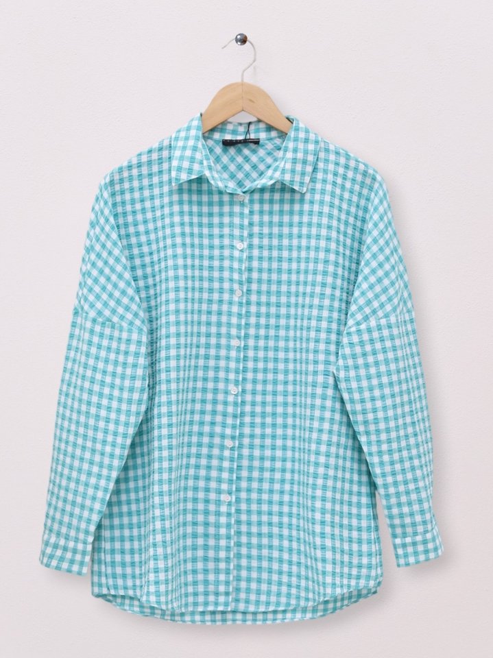 Boydan Düğmeli Gofre Gömlek -Mint
