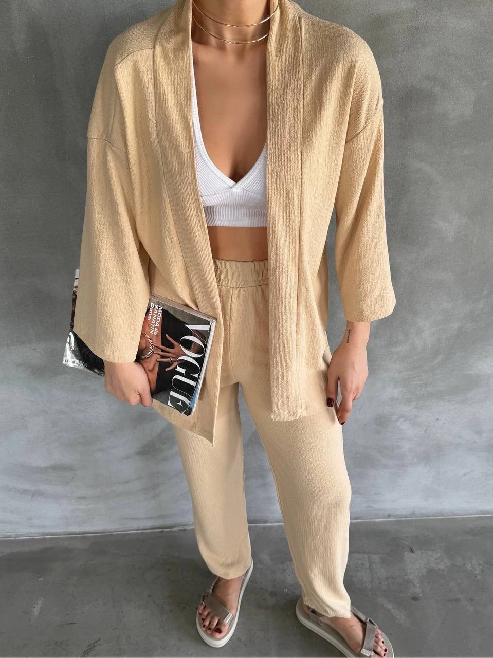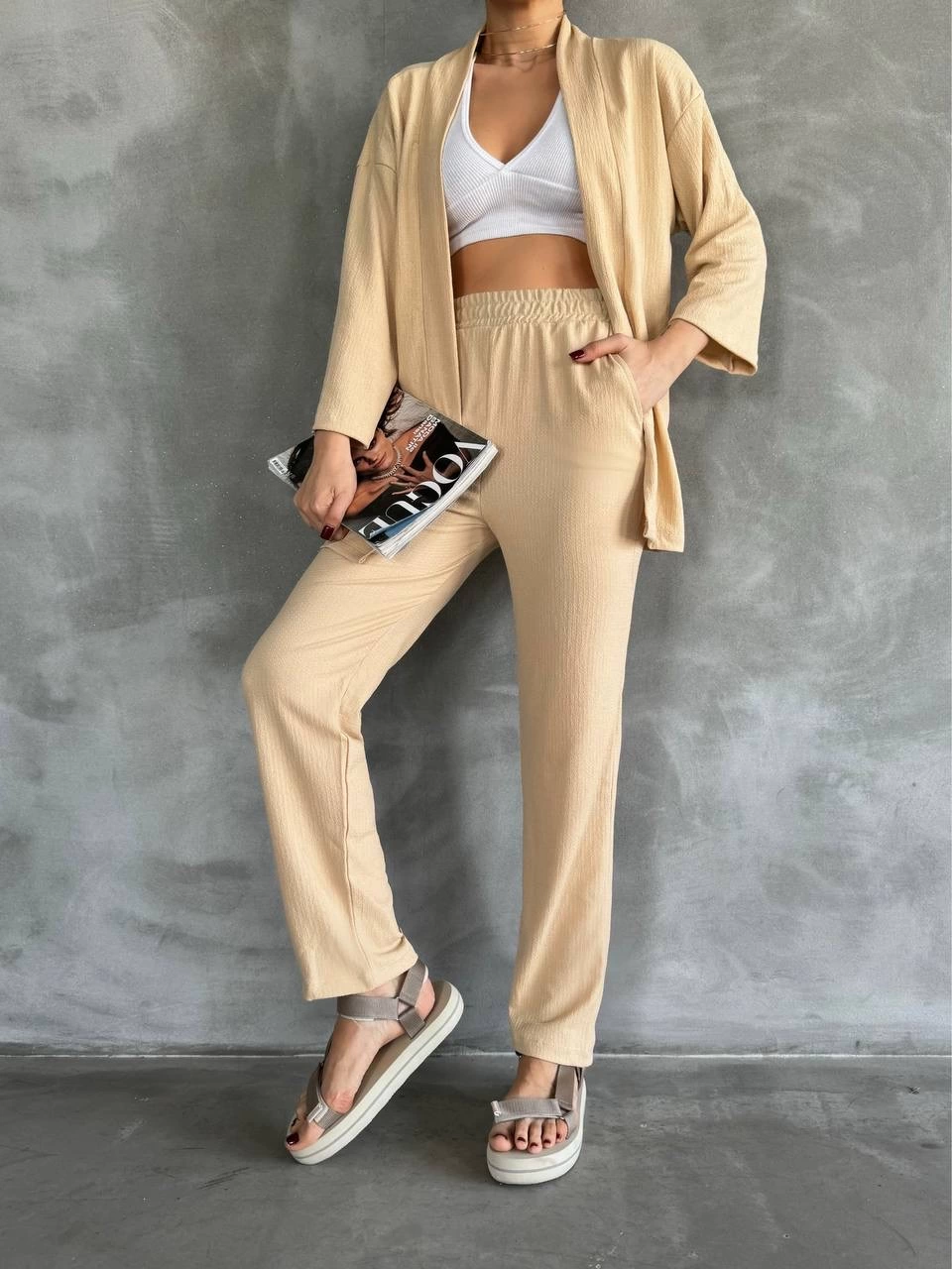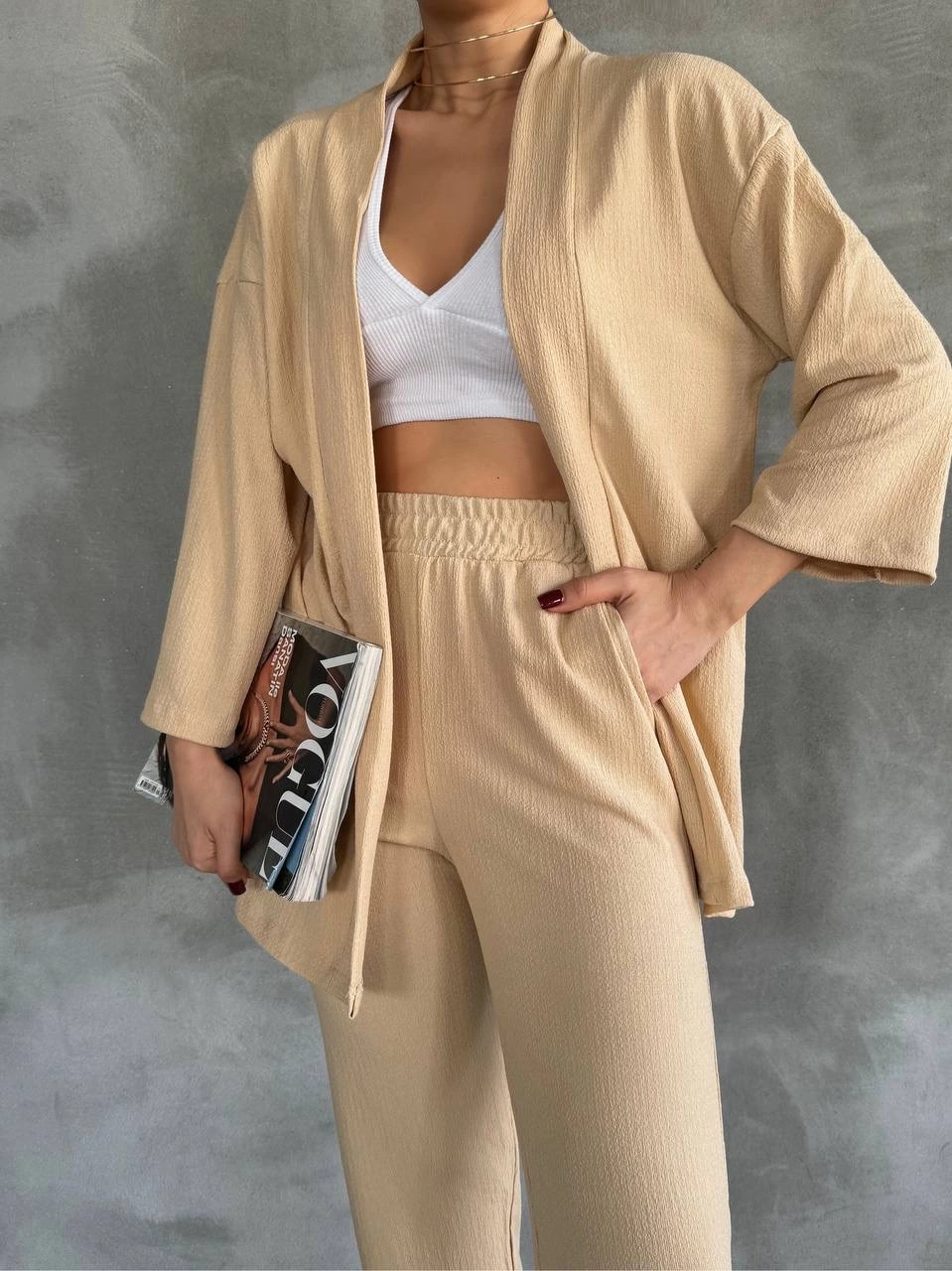 Crop Ceketli Ve Pile Etekli Garnili Takım 10111