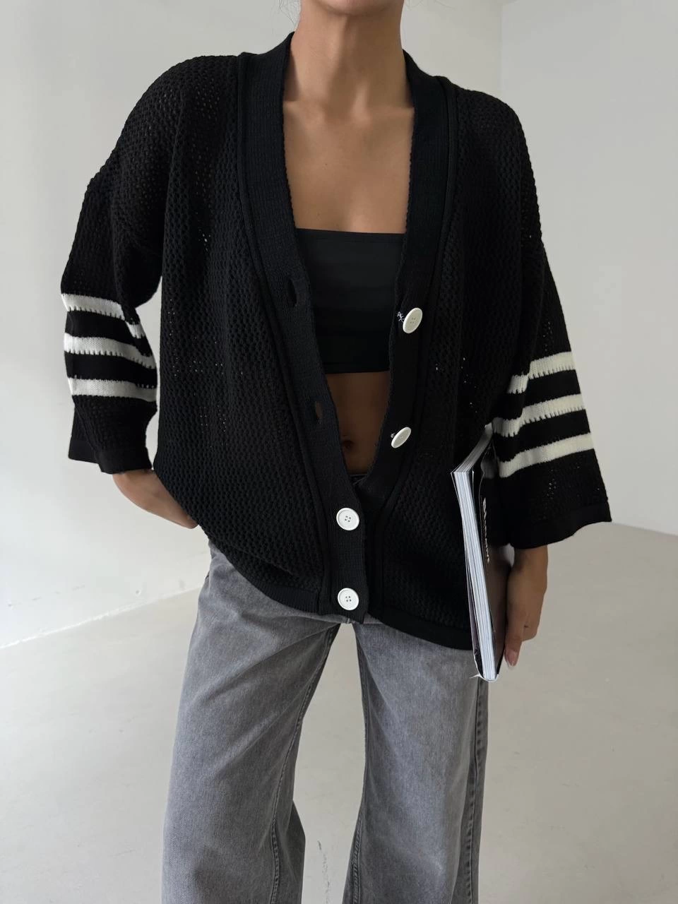 Büyük düğmeli salaş triko hırka siyahbeyaz