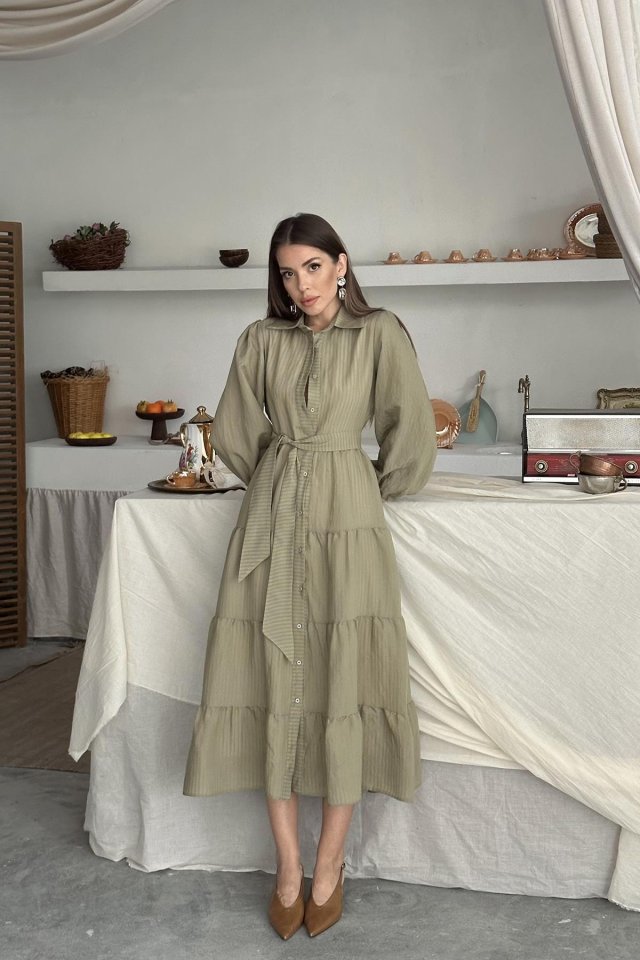 Kadın Kısa Kollu Yakadan Ve Etekten Fermuarlı Midi Viskon Iki Iplik Elbise
