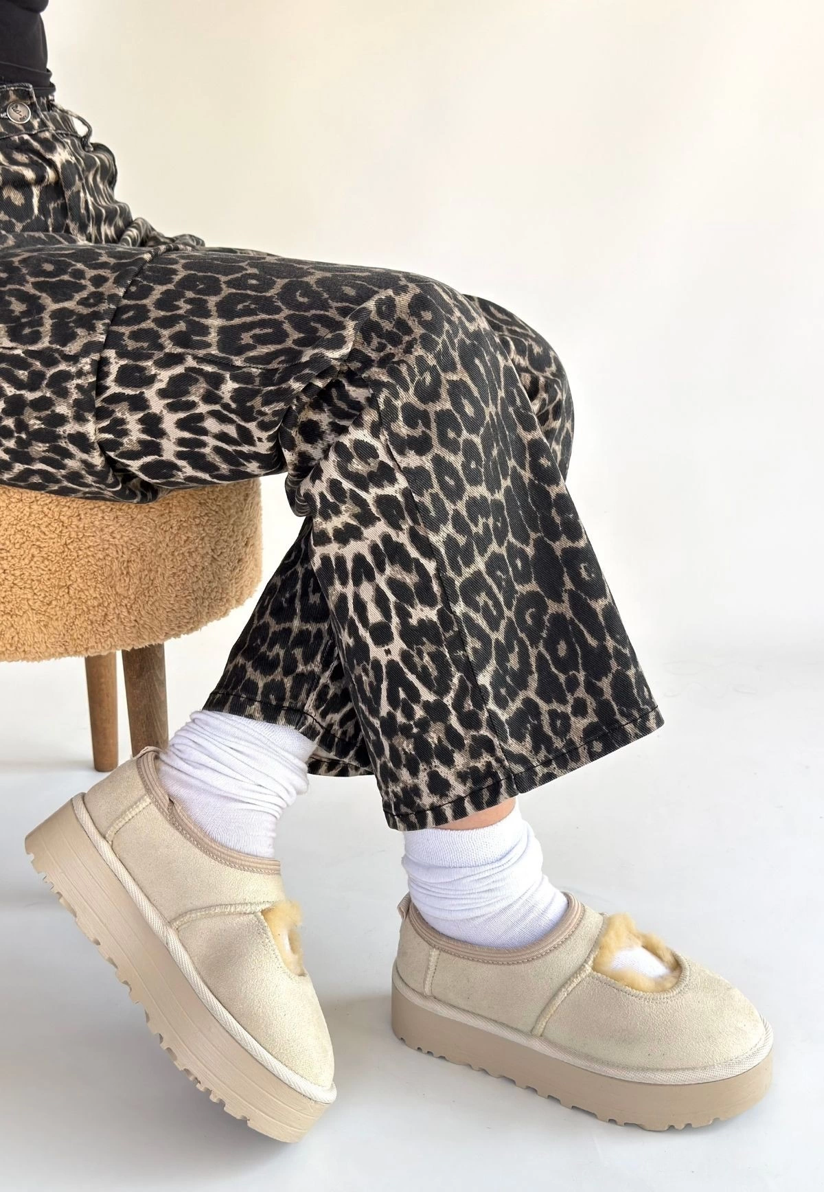 Leopar Sırt Detaylı Leopar Desenli Saten Elbise
