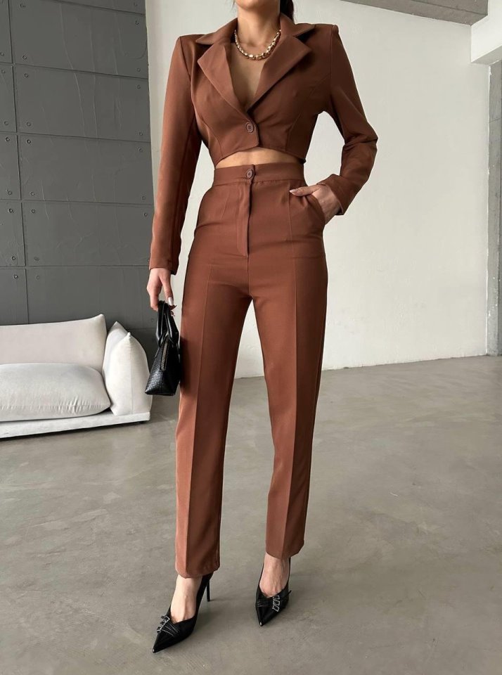 CEKET YAKA BEL DEKOLTELİ TULUM - Acı Kahve