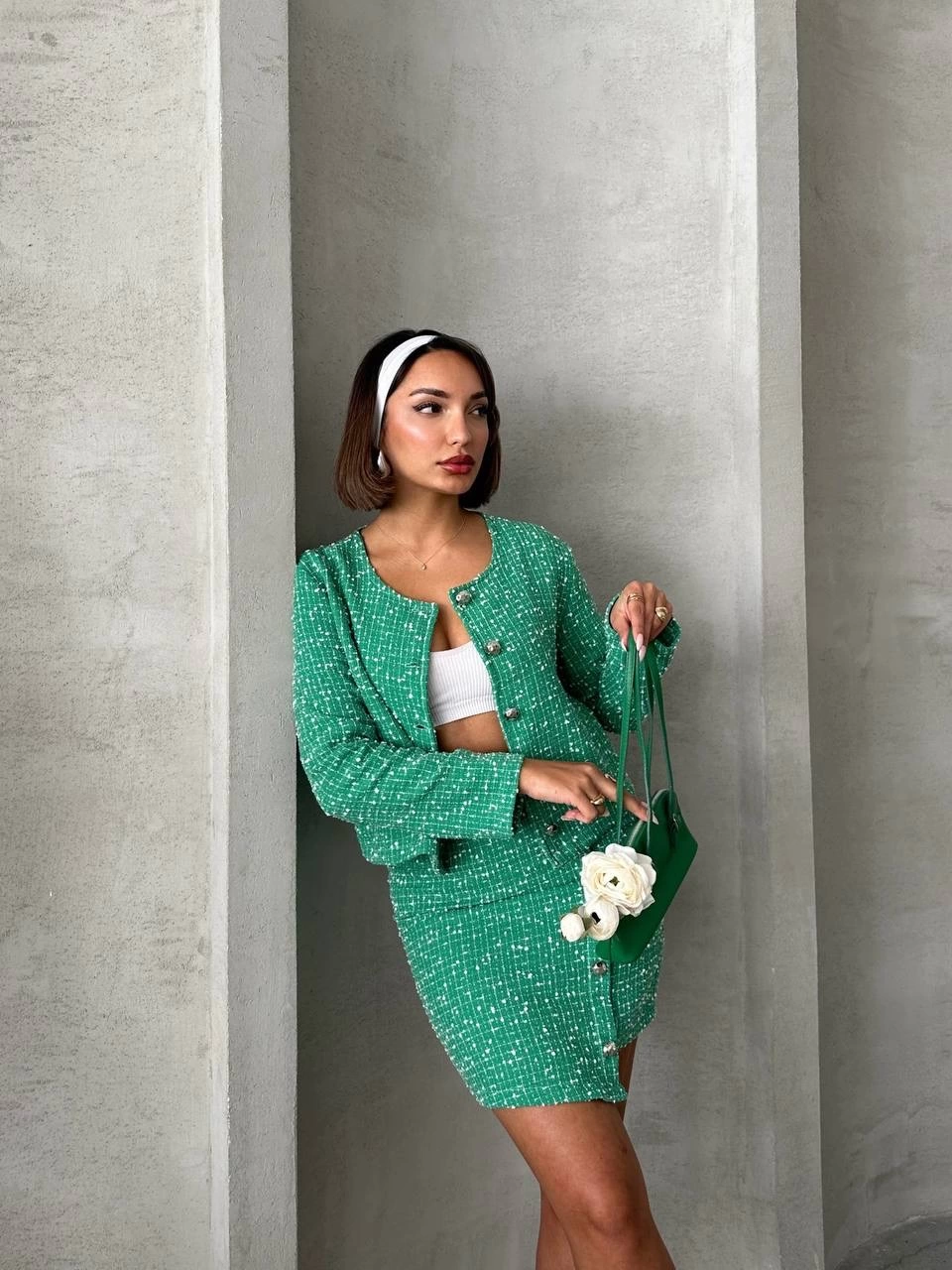 Ceketli etek takım chl kumaş yeşil h24443