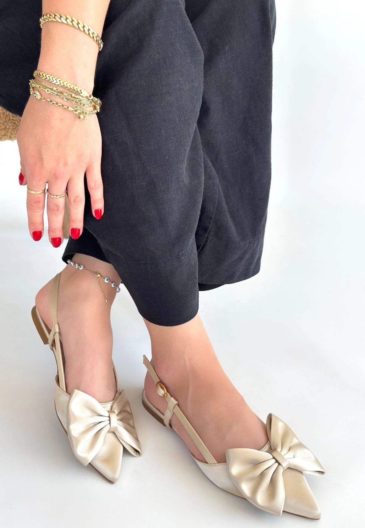 Cenya Bej Saten Babet Ayakkabı