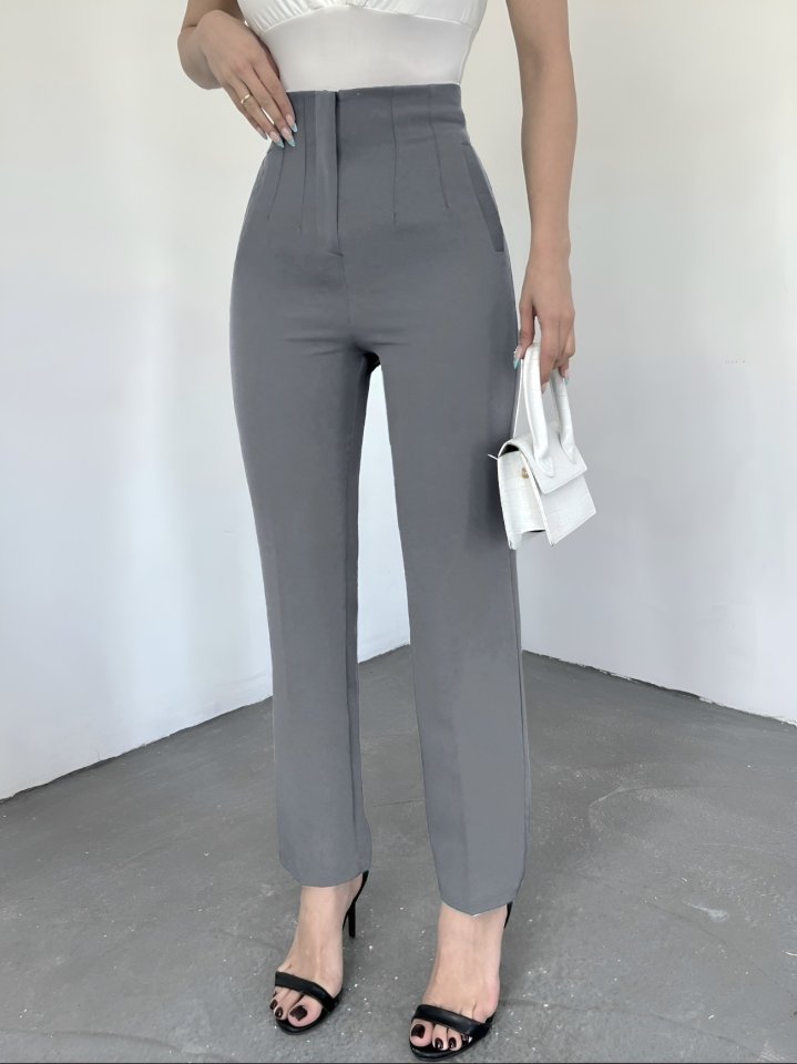 Cep Detaylı Yüksek Bel Pantolon -Gri