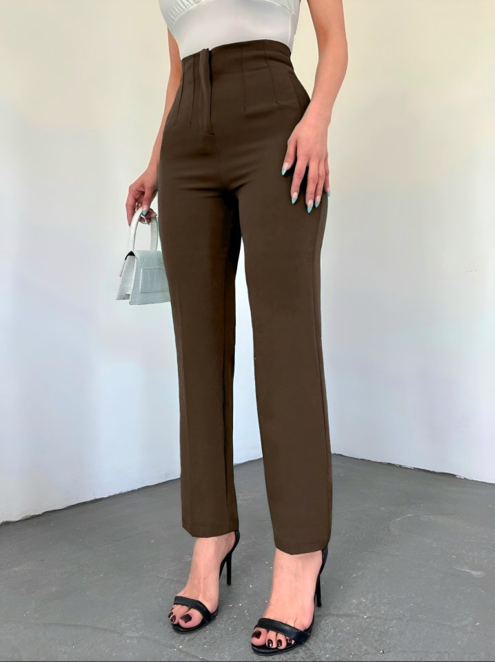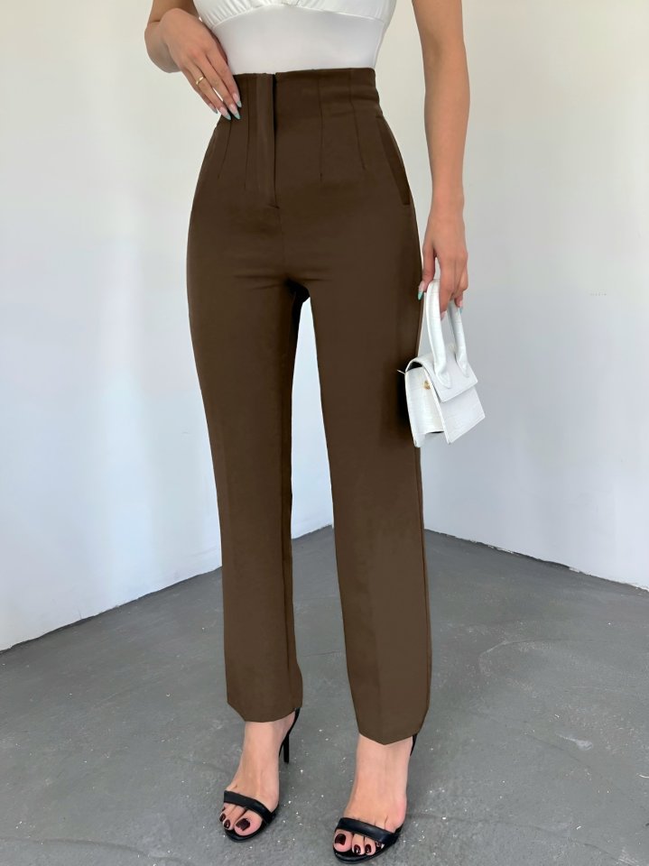 Cep Detaylı Yüksek Bel Pantolon -K. Kahve
