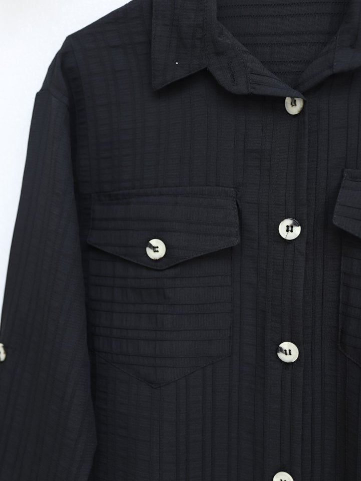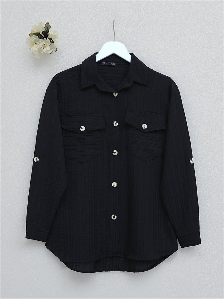 Cepleri Kapaklı Fitilli Ve Düğmeli Gömlek -Siyah