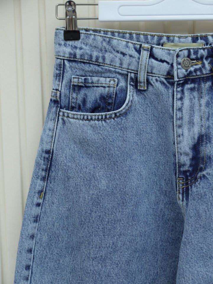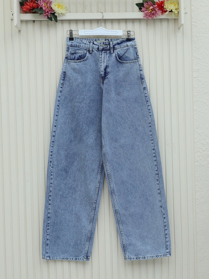 Cepli Bol Paça Fermuarlı Kot Pantolon -Buz Mavi