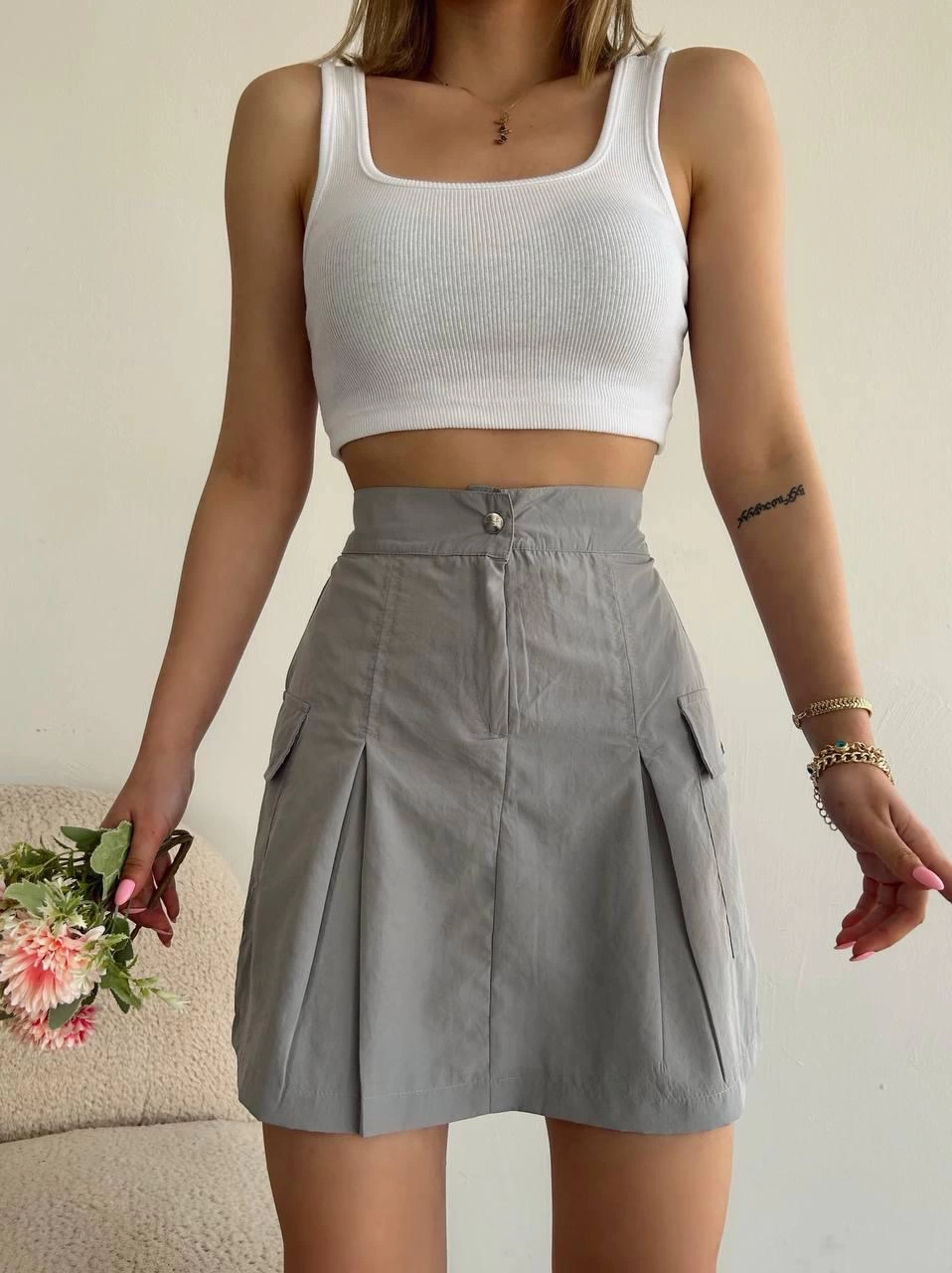 Crop Ceketli Ve Pile Etekli Garnili Takım 10111