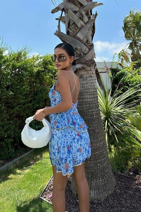 Kadın Kolsuz Boyundan çapraz Geçirmeli Göğüs Damla Detay Kaşkorse Bluz