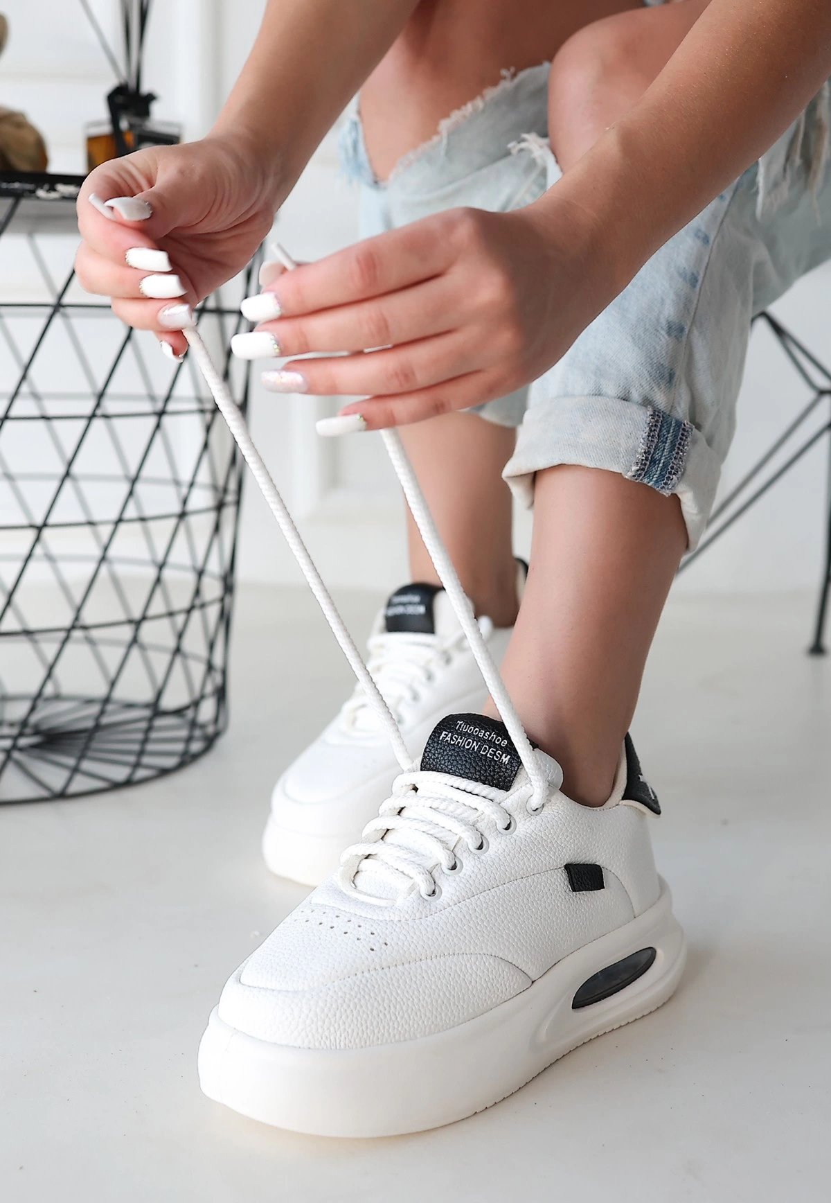 Chris Beyaz Cilt Siyah Detaylı Bağcıklı Spor Ayakkabı