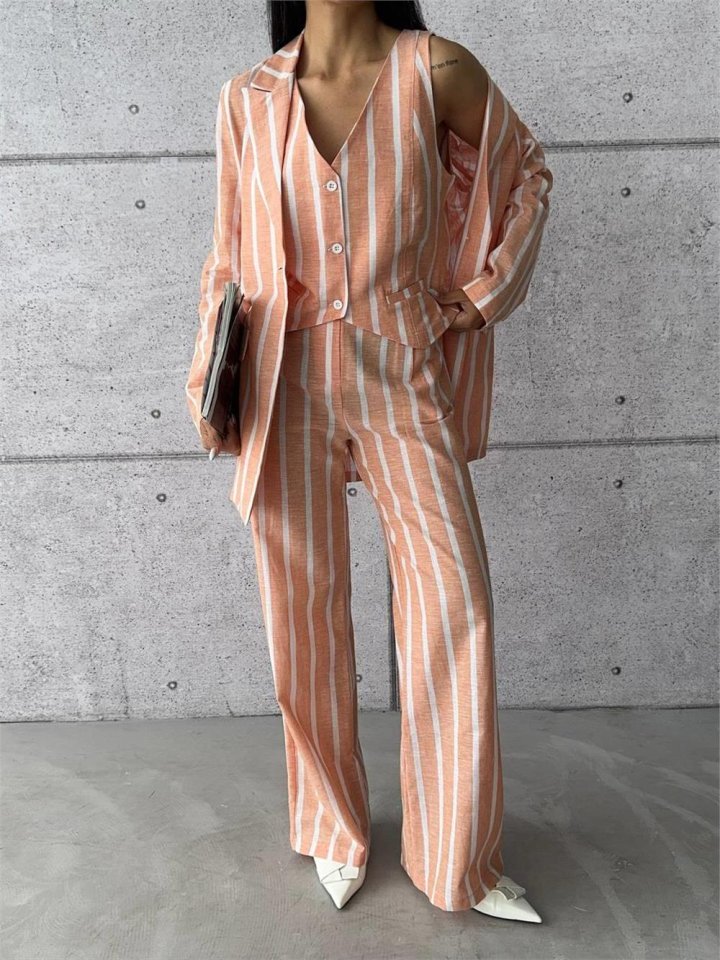 ÇİZGİLİ CEKET KETEN - Orange