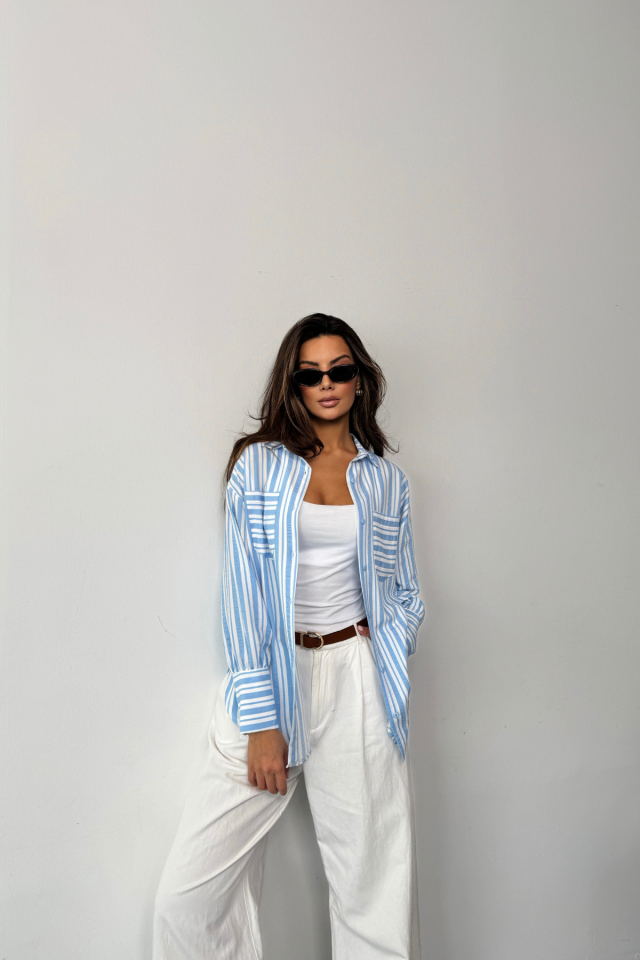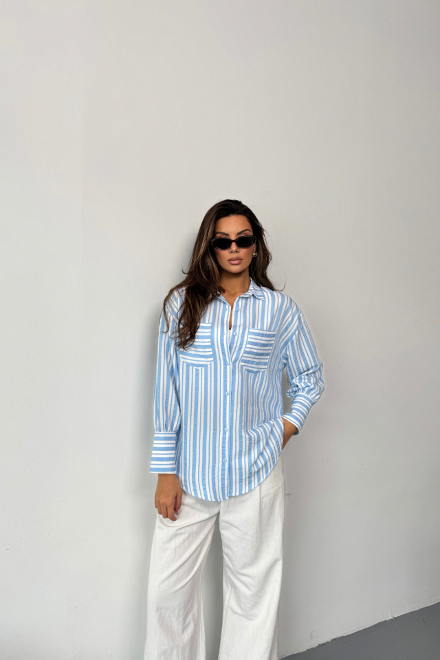 ÇİZGİLİ GÖMLEK - Mavi