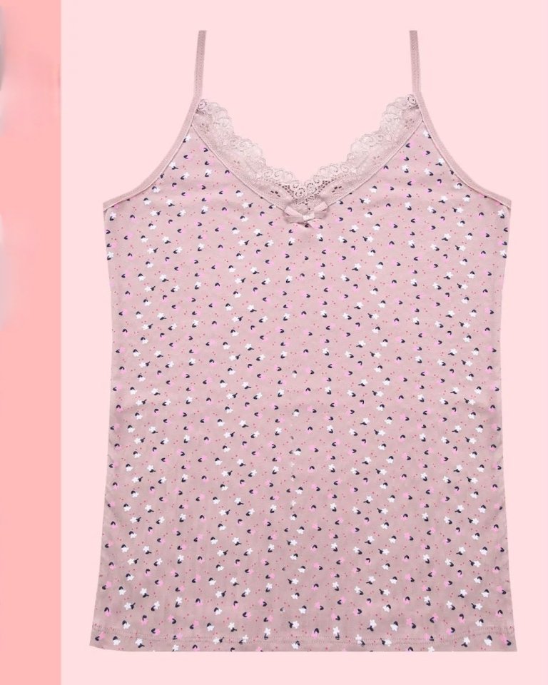 Çiçek Desenli Dantelli İp Askılı Atlet -Toprak