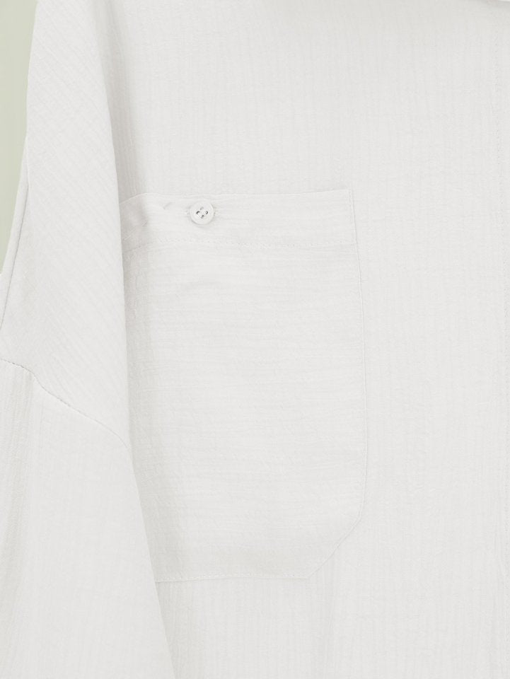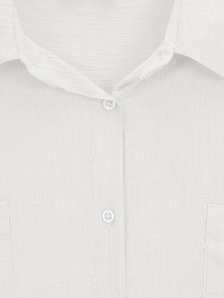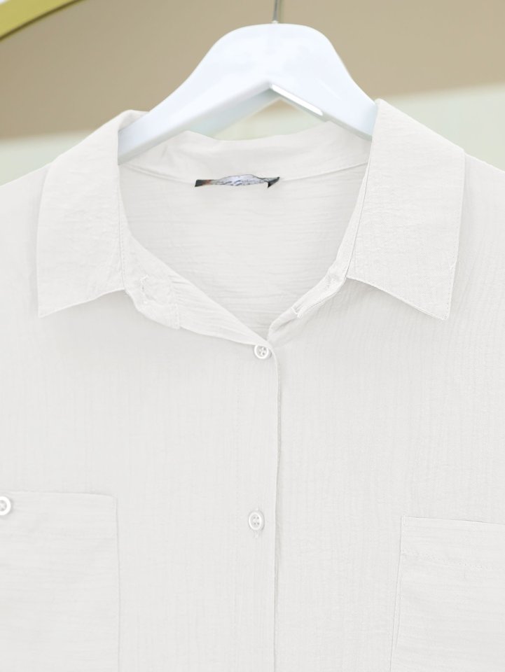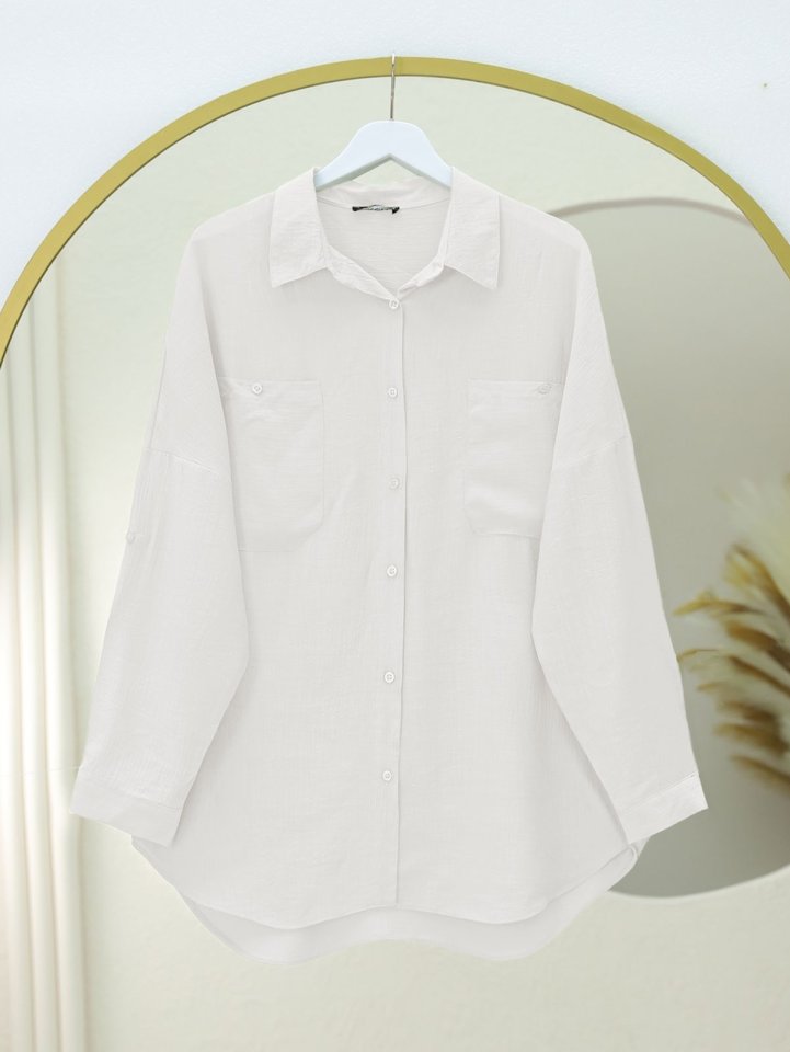 Çift Cepli Oval Kesim Kolu Katlamalı Gömlek Tunik -Beyaz
