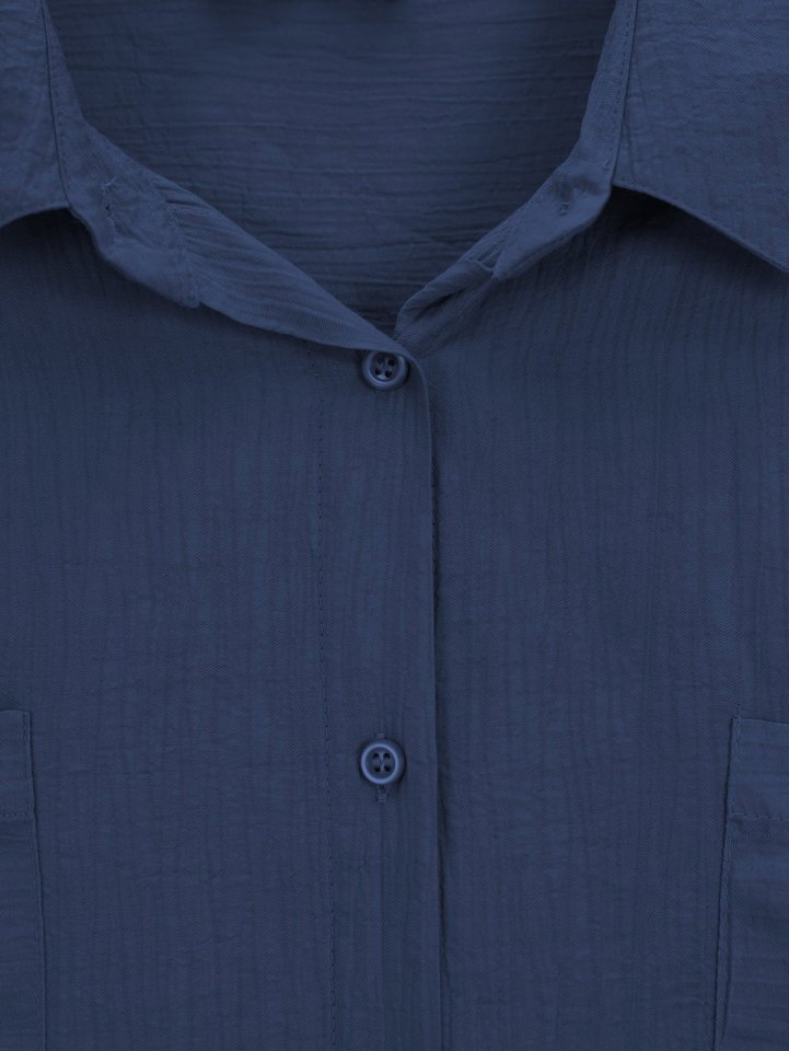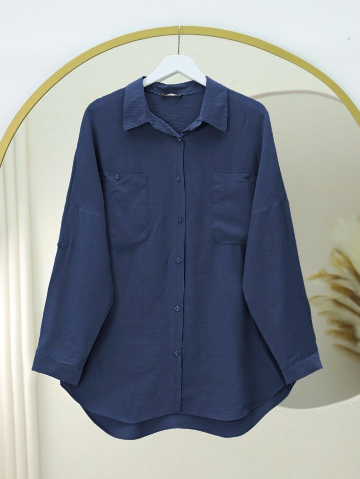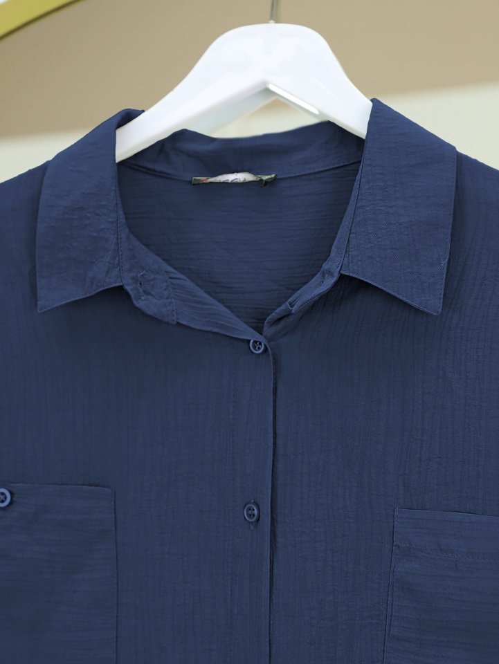 Çift Cepli Oval Kesim Kolu Katlamalı Gömlek Tunik -Laci