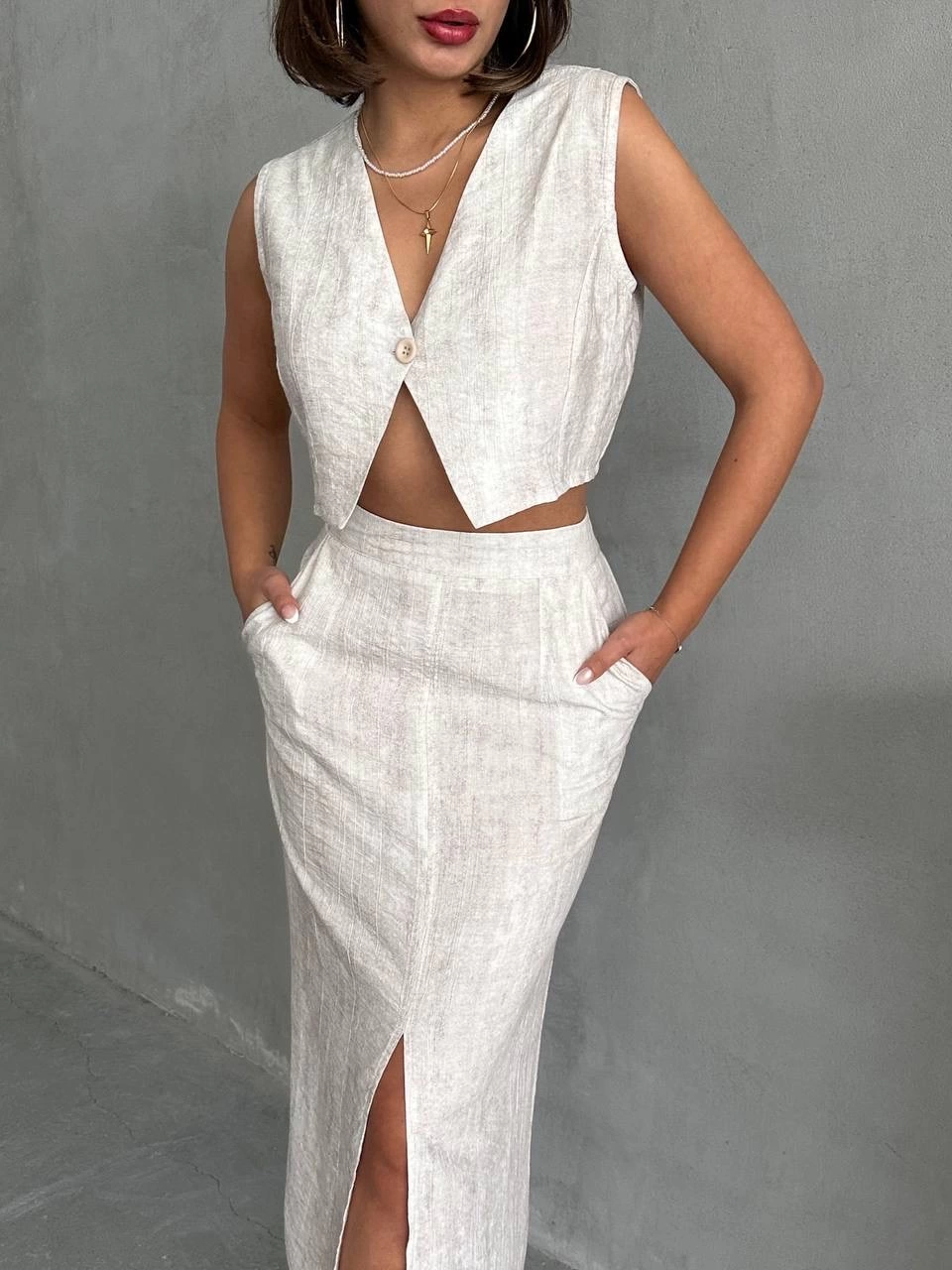 Crop Ceketli Ve Pile Etekli Garnili Takım 10111