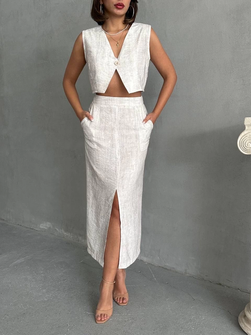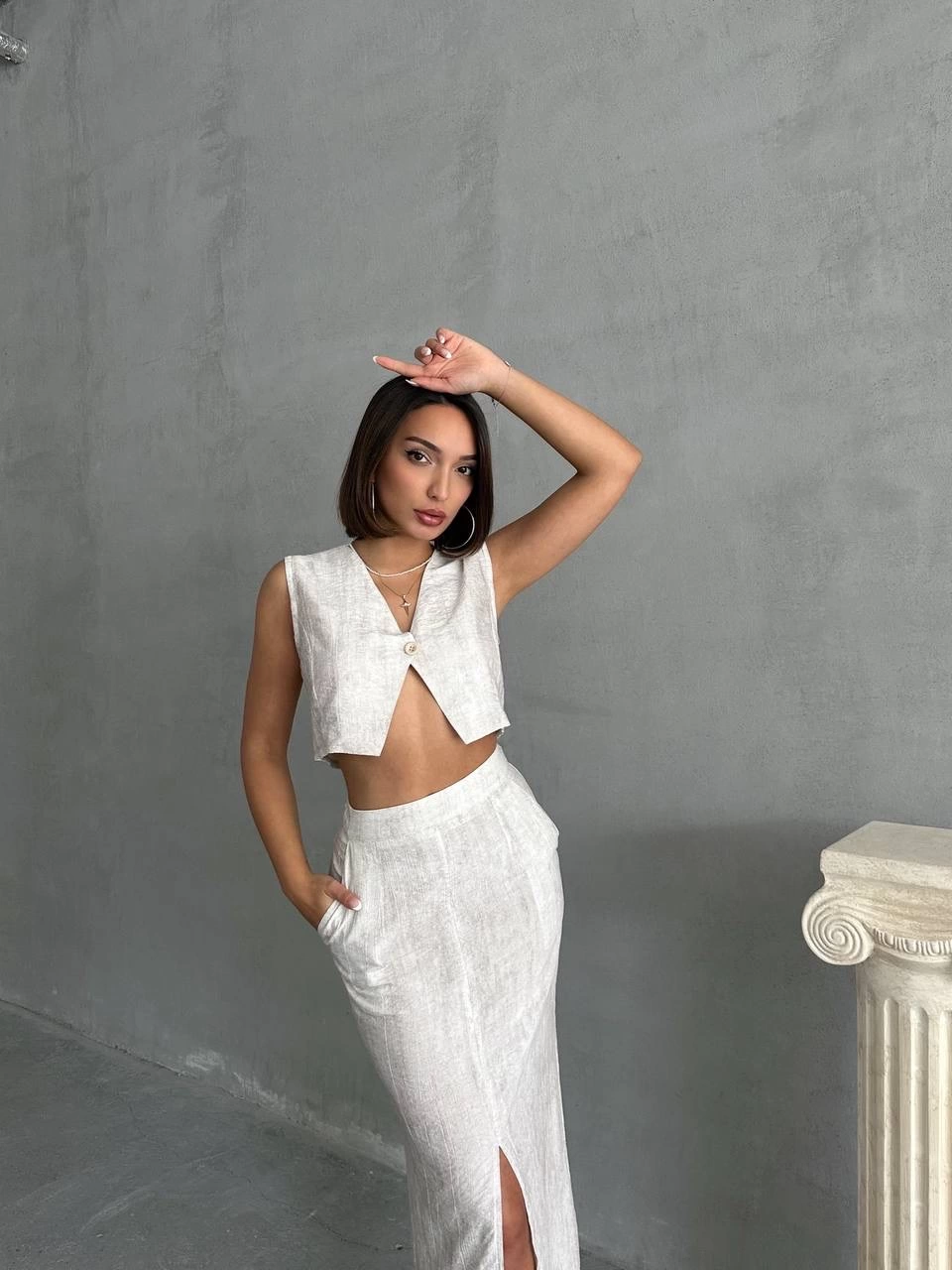 Kadın Kolsuz Boyundan çapraz Geçirmeli Göğüs Damla Detay Kaşkorse Bluz