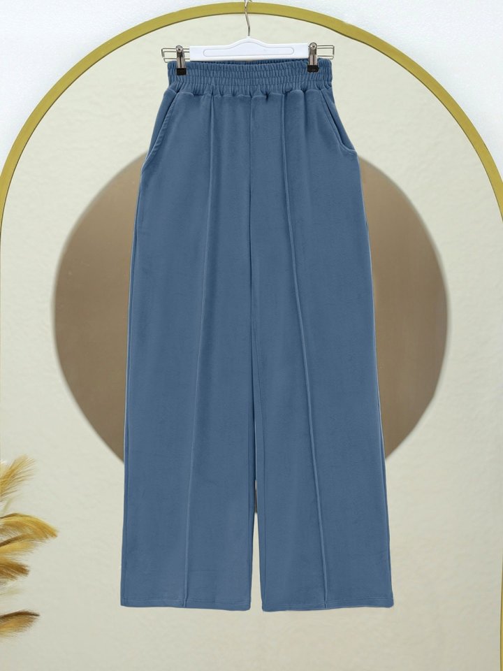 Çımalı Beli Lastikli Kadife Pantolon -Mavi