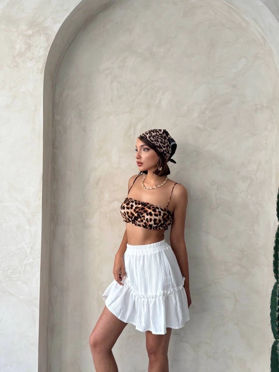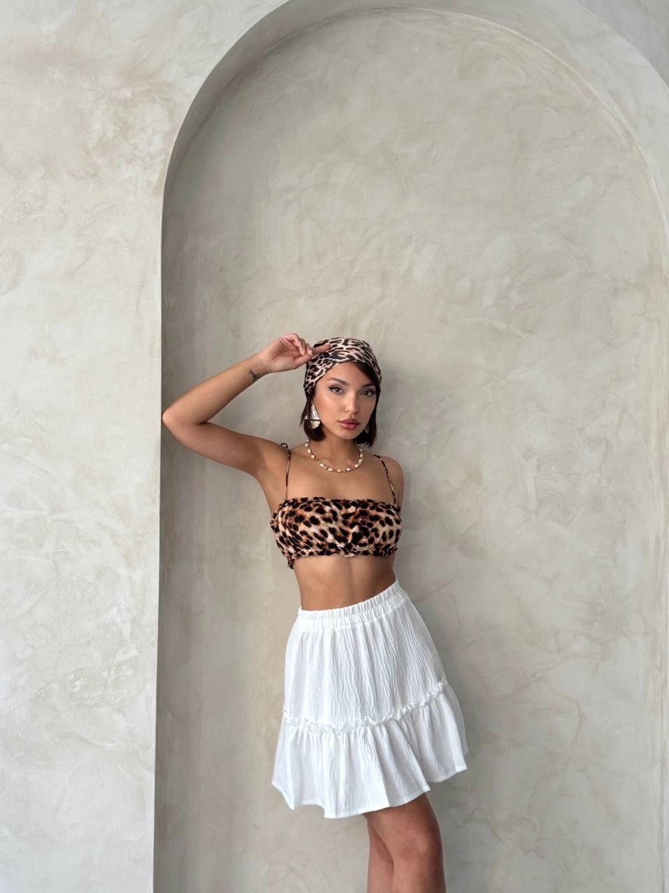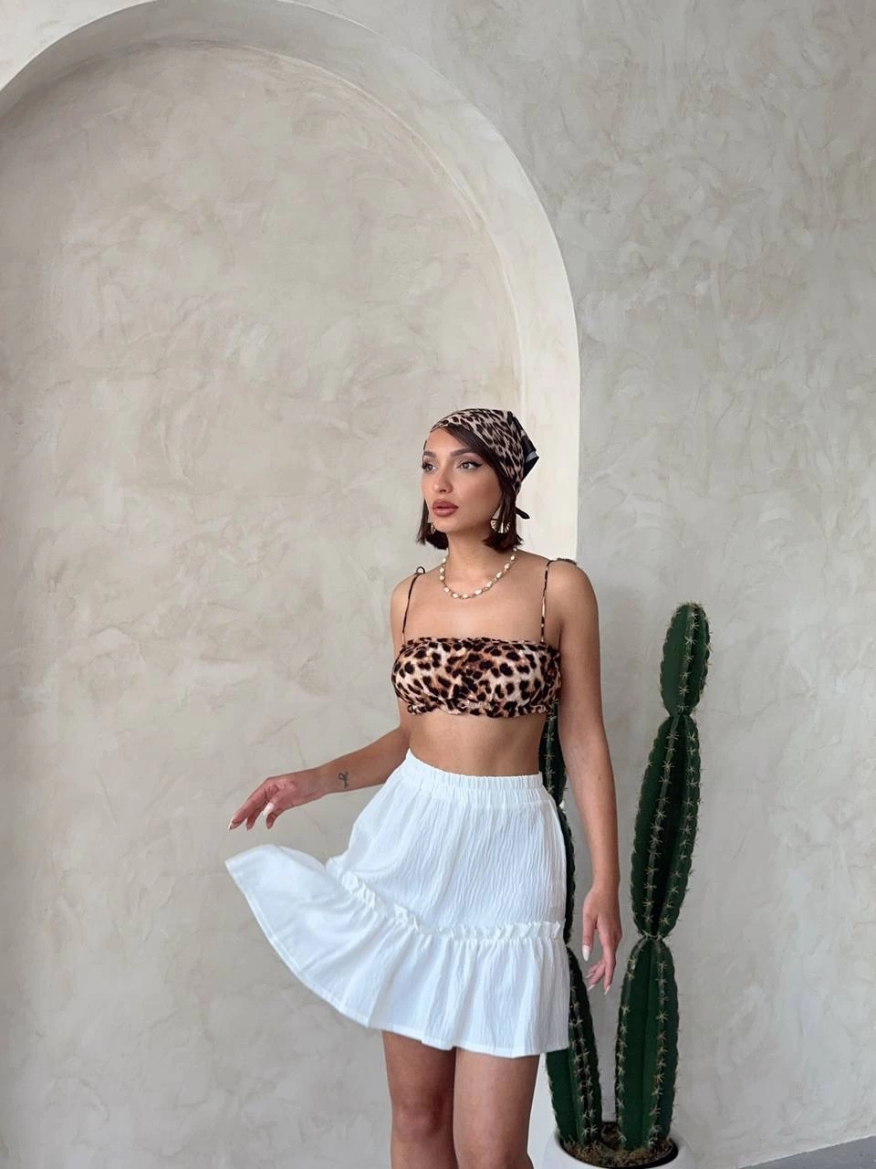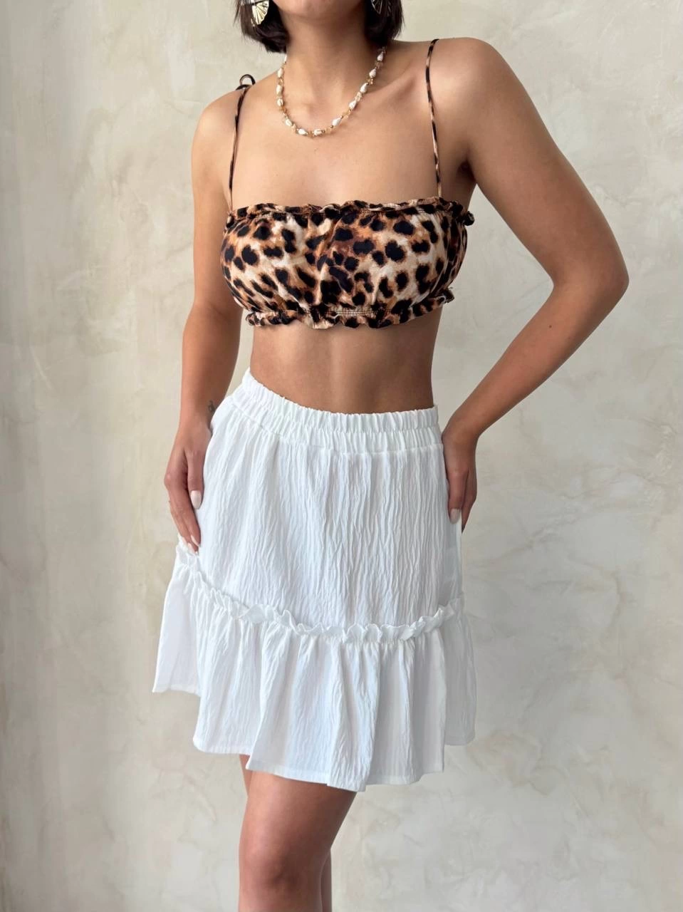 Çingene keten etek beyaz s24808