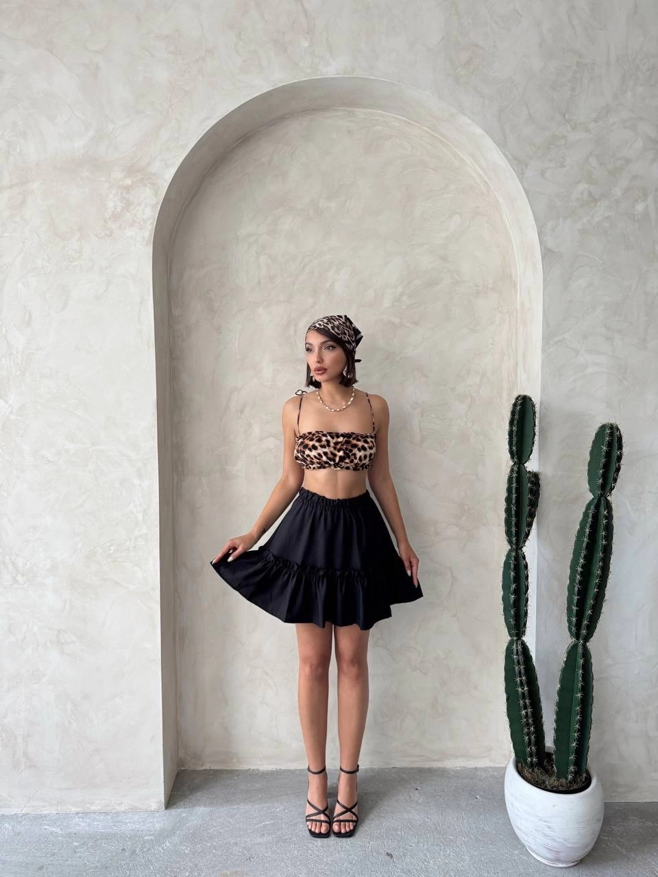 Crop Ceketli Ve Pile Etekli Garnili Takım 10111