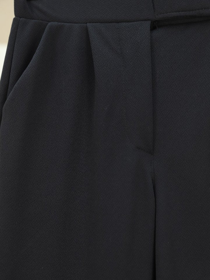 Cırtlı Fermuarlı Palazzo Pantolon -Siyah
