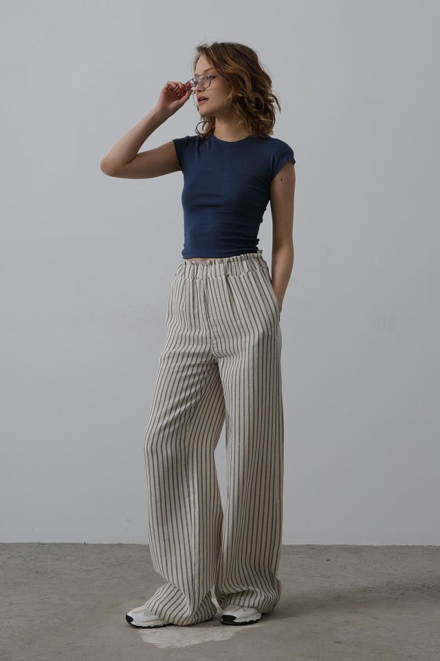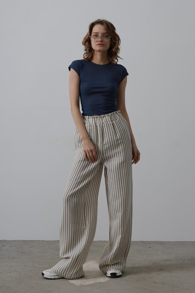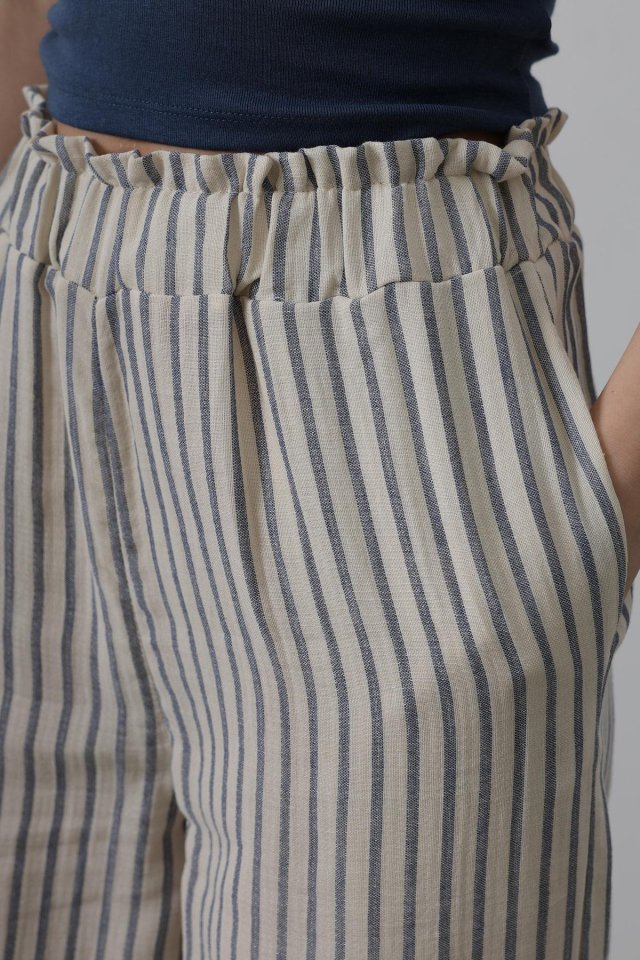 Çizgili Pamuklu Lastikli Pantolon - Bej-Lacivert