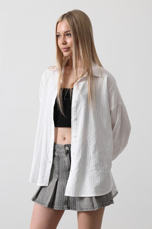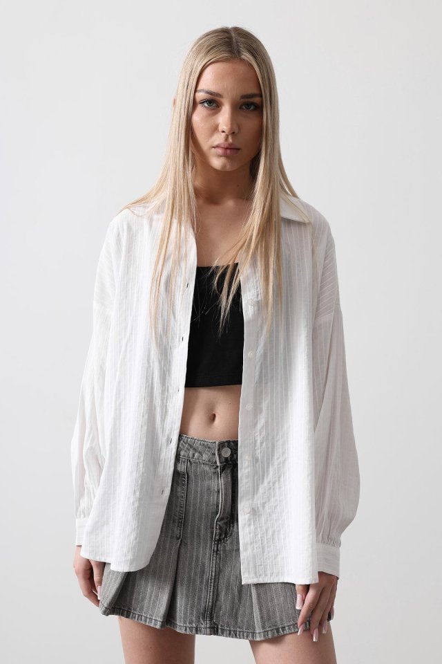 Çizgili Uzun Kol Gömlek - Beyaz